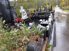 Основная наша задача на данном объекте – реставрация места захоронения и подготовка его к зиме. Помимо этого, клиент попросил немного приподнять уровень примыкающего к месту захоронения покрытия, так как на кладбище была построена дорога и в нише между участком и проезжей частью начала скапливаться влага и различная грязь.